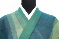 本麻 夏着物 近江 ルポワン染め 縞 緑系