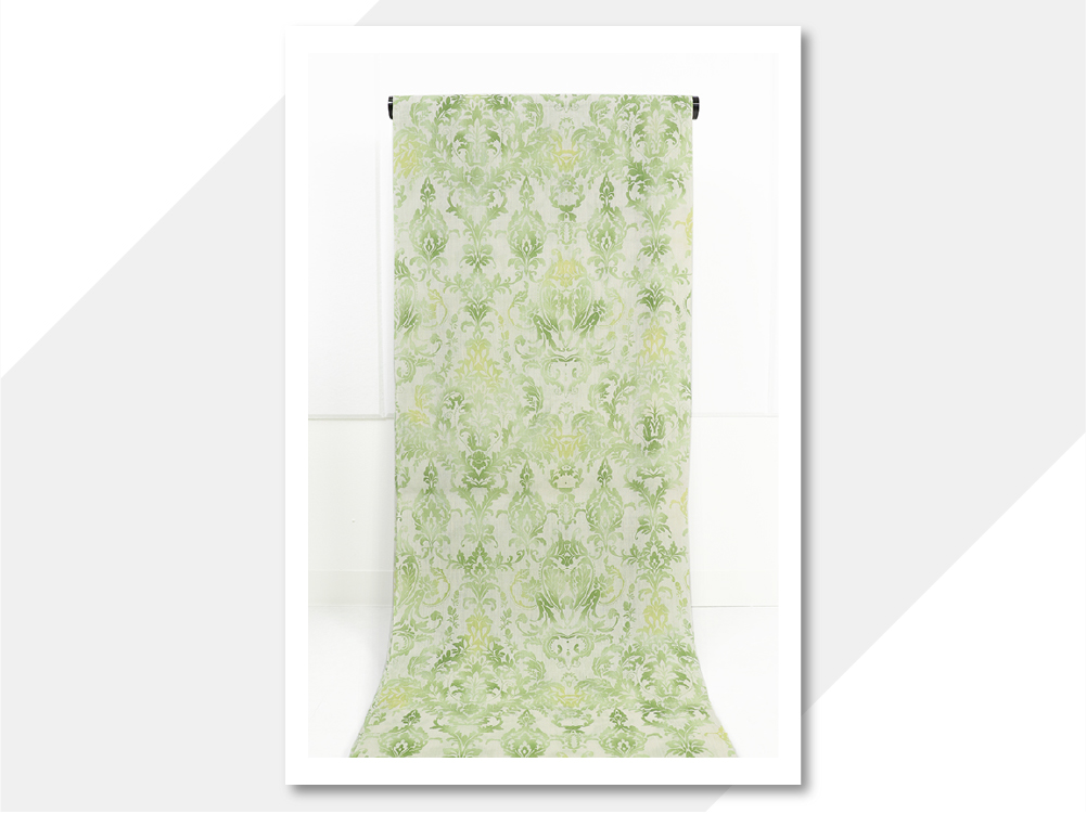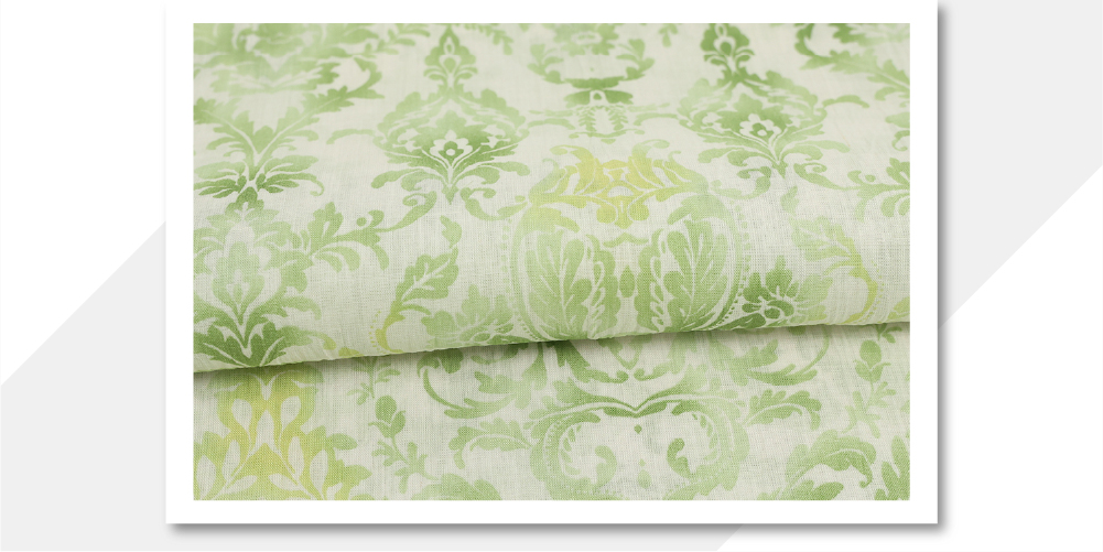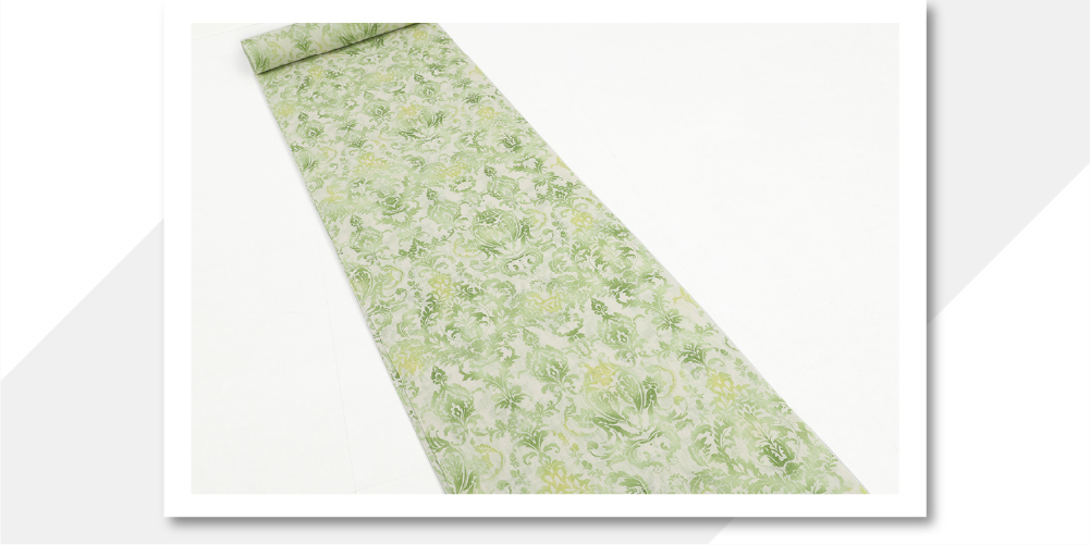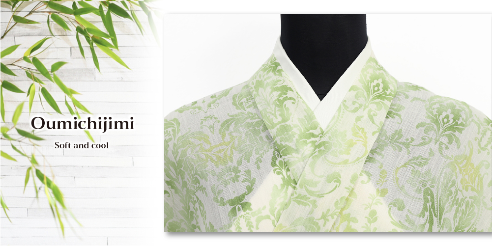 近江ちぢみ IKS 本麻 夏着物 広幅 楊柳 アラベスク 生成り地 グリーン