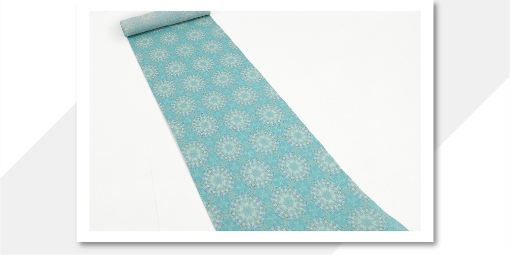 近江ちぢみ MoMo 本麻 夏着物 広幅 楊柳 プリズムガーデン 水色