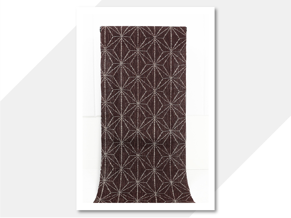 近江ちぢみ IKS 本麻 夏着物 広幅 楊柳 本麻絣調 麻の葉 焦茶