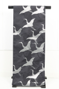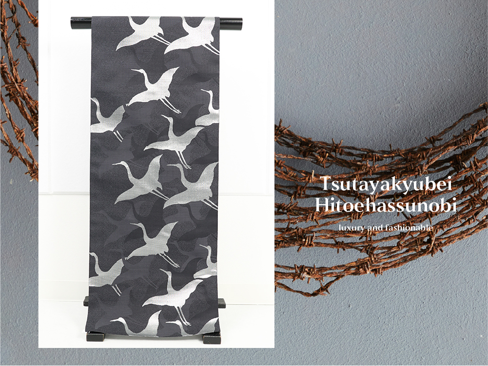 西陣織 蔦屋久兵衛 ひとえ八寸帯(兵児帯)鶴 黒×銀