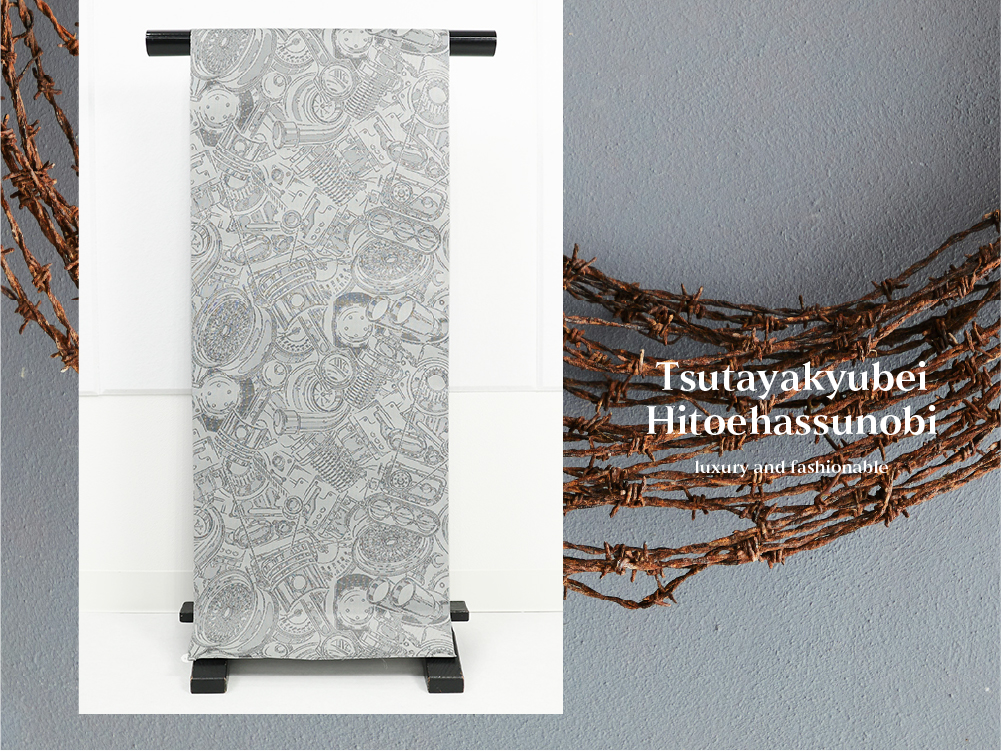京都西陣、蔦屋久兵衛の遊び心のあるひとえ八寸帯をお届けします。