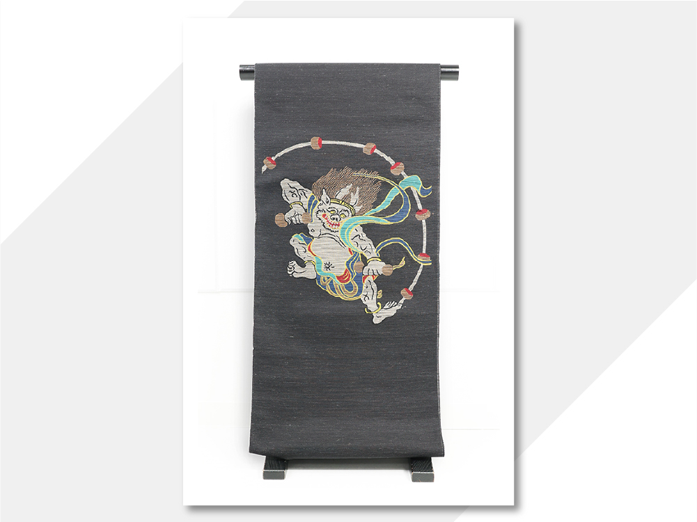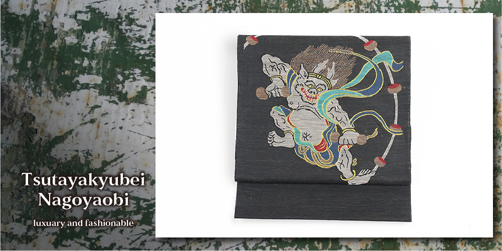 雷神が大胆に描かれた魅力的な名古屋帯です。