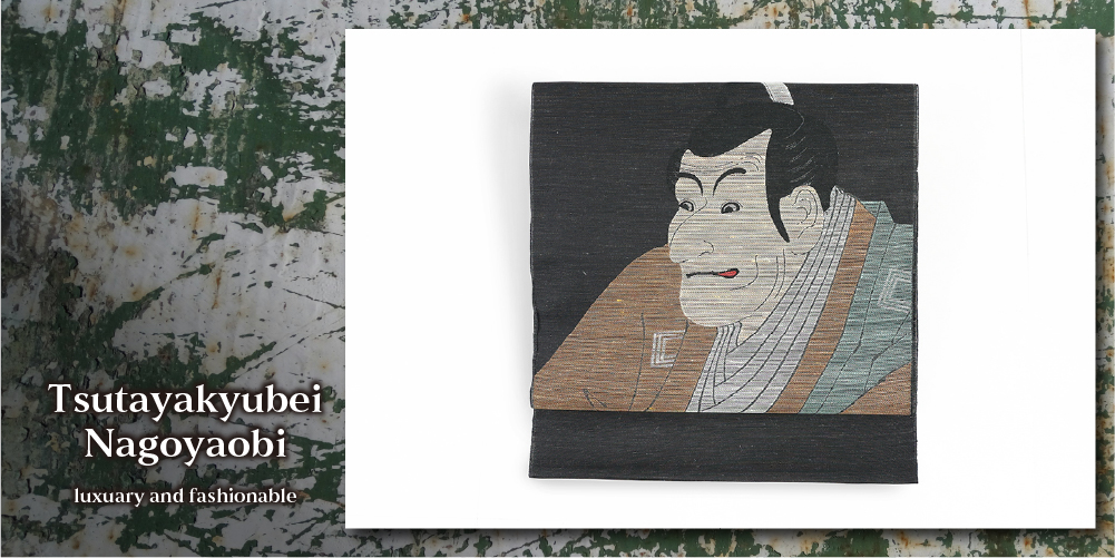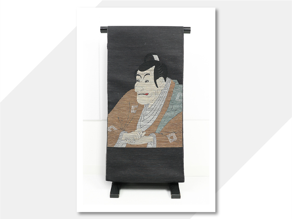 江戸時代の浮世絵、東洲斎写楽の市川鰕蔵の名古屋帯です。