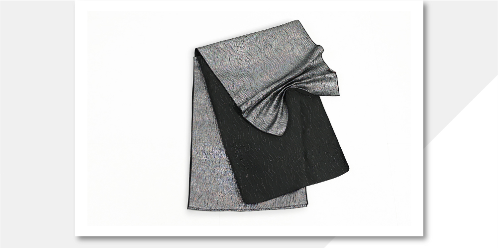Rumi Rock (ルミロック) ひとえ八寸帯(兵児帯) シワ兵児 オーロラシルバー×ブラック