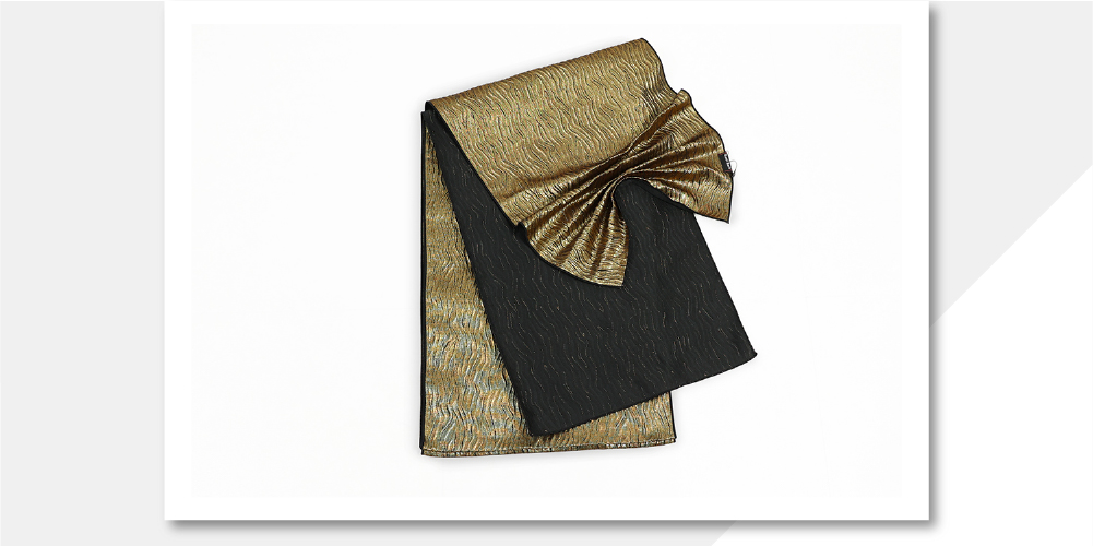 Rumi Rock (ルミロック) ひとえ八寸帯(兵児帯) シワ兵児 ゴールド×ブラック