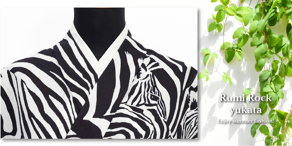 Rumi Rock(ルミロック) 浴衣(ゆかた) ゼブラ 白地に黒