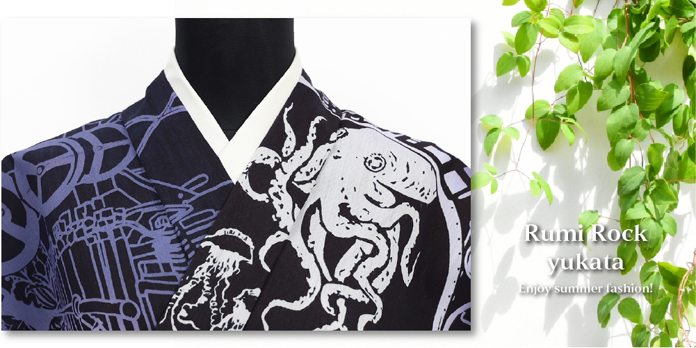Rumi Rock(ルミロック) 浴衣(ゆかた) ノーチラス号 紺地に黒