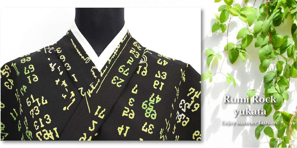 Rumi Rock(ルミロック) 浴衣(ゆかた) リーマン予想 黒地に緑