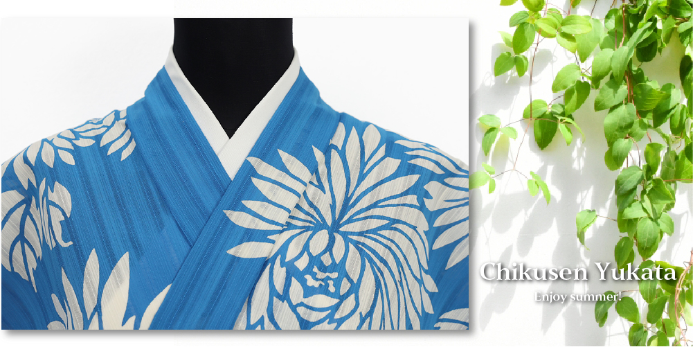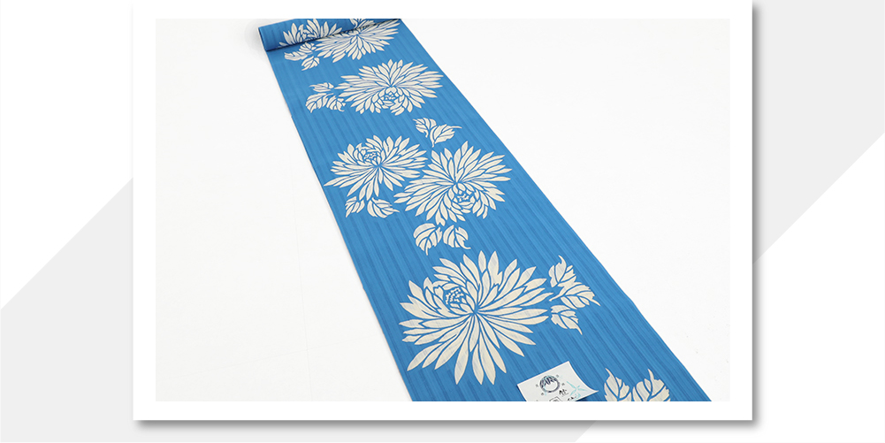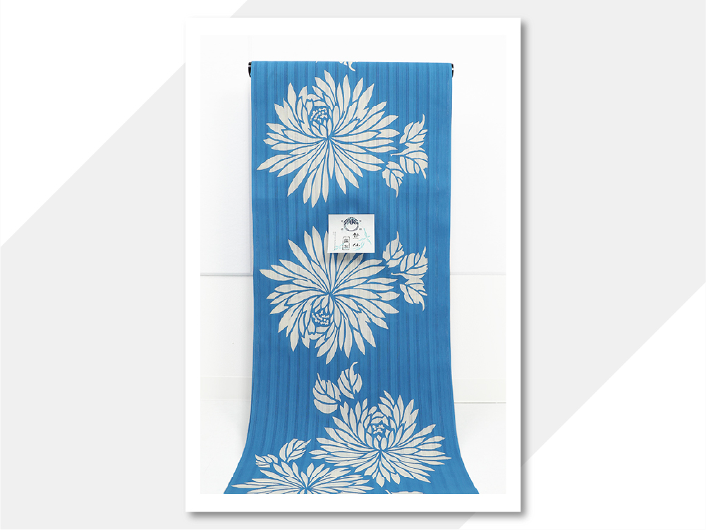 竺仙(ちくせん) 浴衣(ゆかた)綿 菊 青