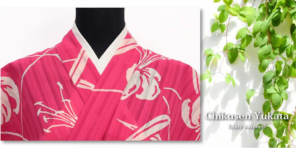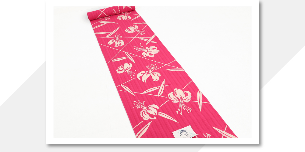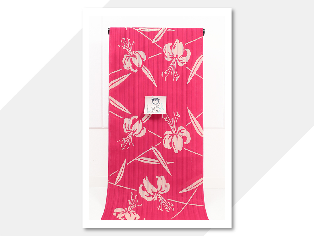 竺仙(ちくせん) 浴衣(ゆかた)綿 ユリ ピンク