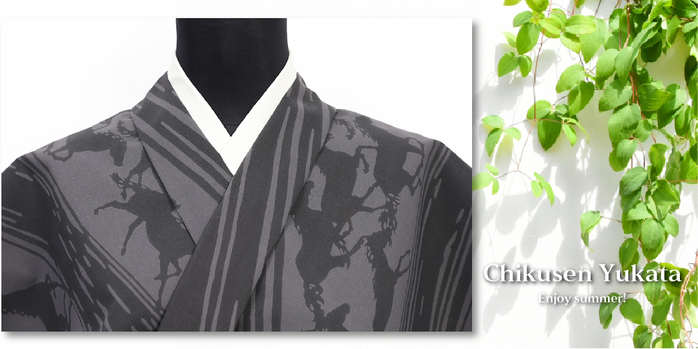 竺仙(ちくせん) 浴衣(ゆかた)綿 馬 濃灰