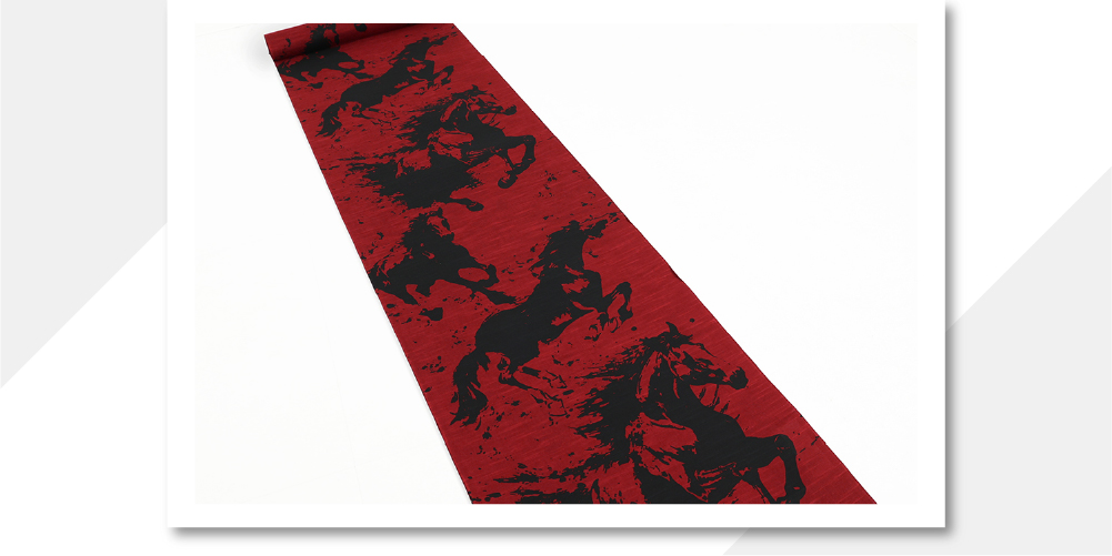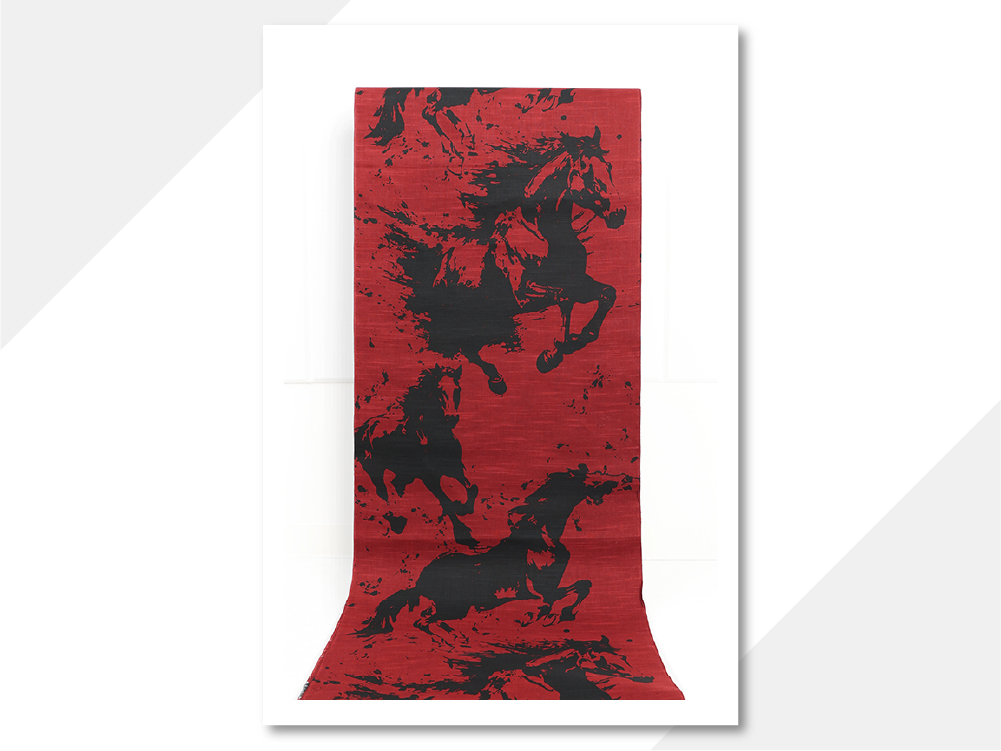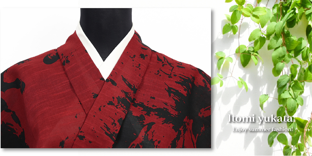 井登美 itomi 浴衣(ゆかた) 優華壇 綿 左馬墨絵 赤黒 ◆男女兼用◆