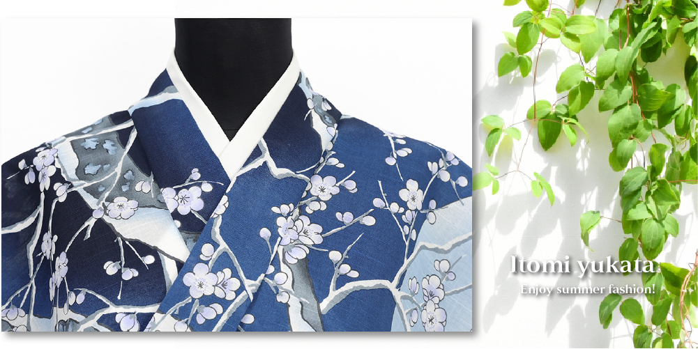 井登美 itomi 浴衣(ゆかた) 優華壇 綿 琳派 雪月花 ひといろ藍 ◆男女兼用◆