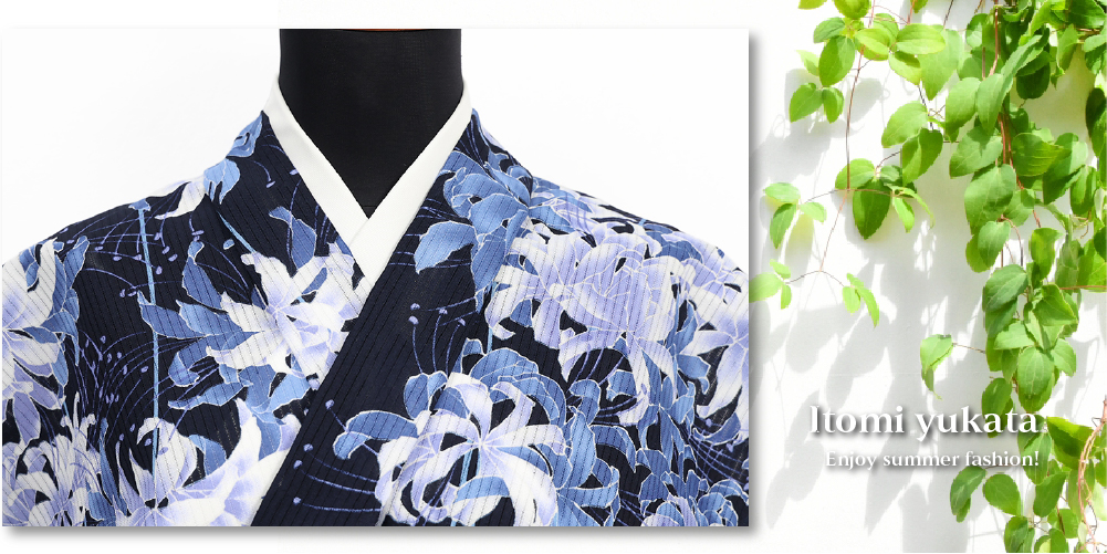 井登美 itomi 浴衣(ゆかた) 優華壇 綿 曼珠沙華 ひといろ 藍 ◆男女兼用◆