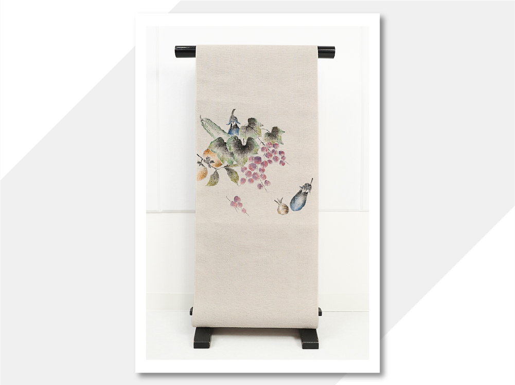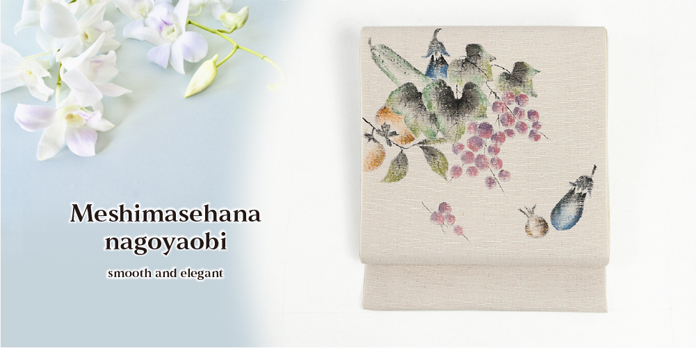 召しませ花 本麻 八寸名古屋帯 夏帯 夏野菜 生成り