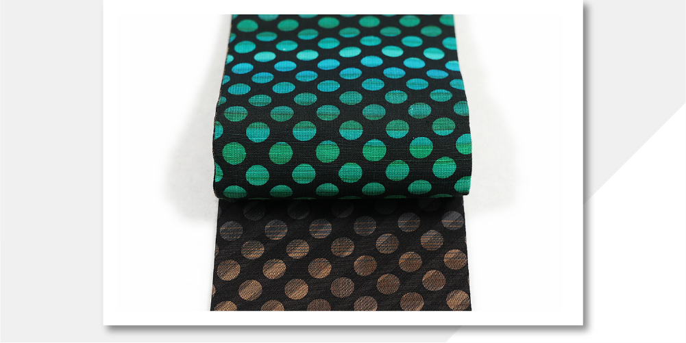 京都 青野工房 角帯 正絹 ハイブリッド染め 色窓ドット ドット茶 1114