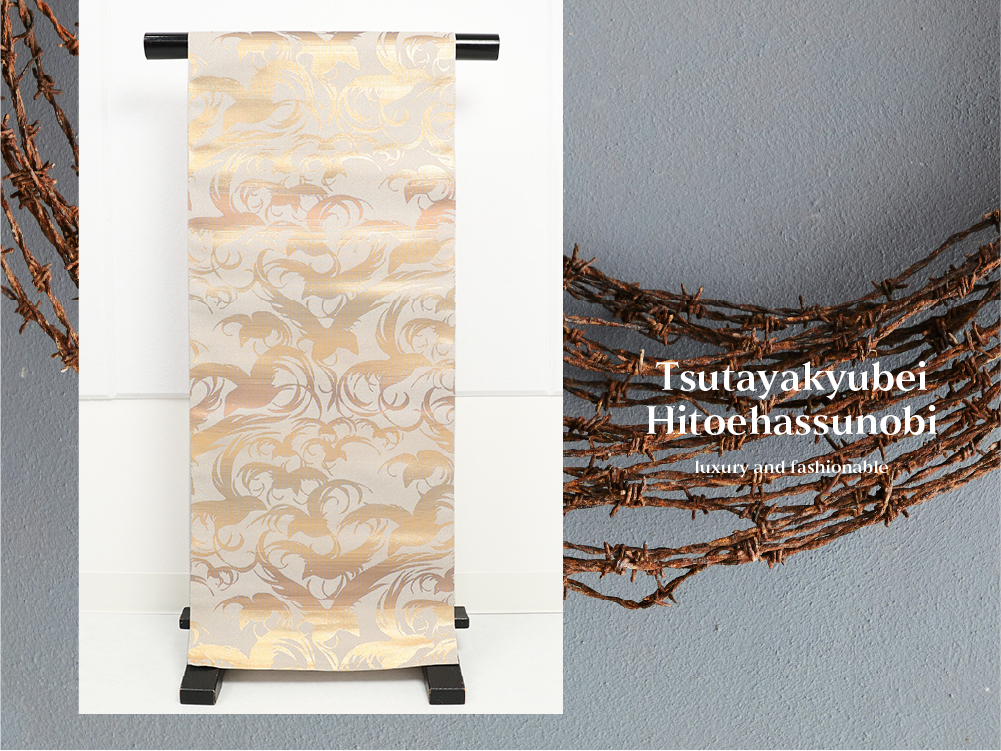 京都西陣、蔦屋久兵衛の遊び心のあるひとえ八寸帯をお届けします。