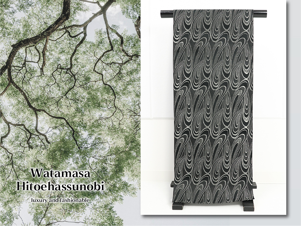 お召で有名なワタマサが、地紋の織りからこだわったひとえ八寸帯(兵児帯)です。