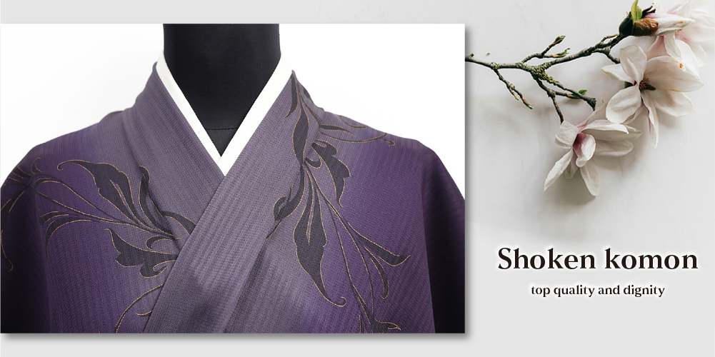 正絹 着物 小紋 丹後ちりめん 蔦模様 ぼかし染 濃紫