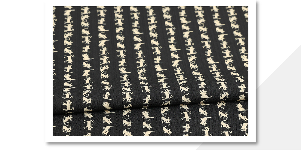 ポリエステル着物 浴衣 セオα 猫ストライプ 黒