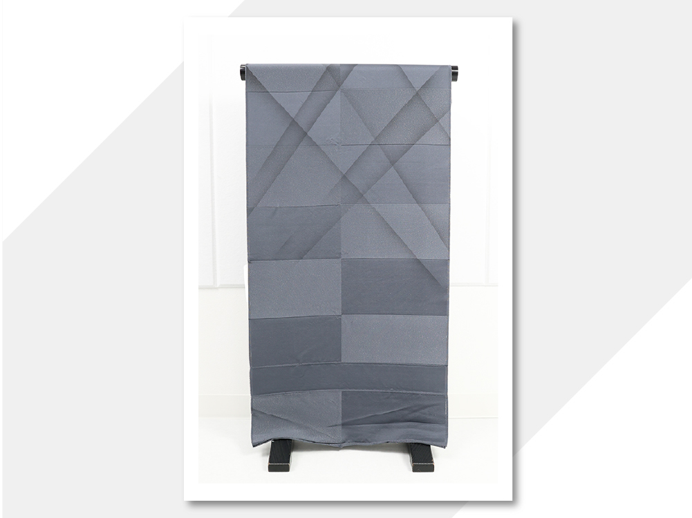 正絹 着物 小紋 市松 幾何学 ぼかし染 灰