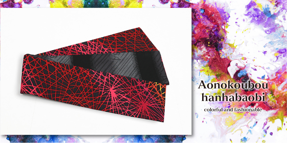 カラフルで力強い半幅帯で、自由にコーディネートを楽しんでください。