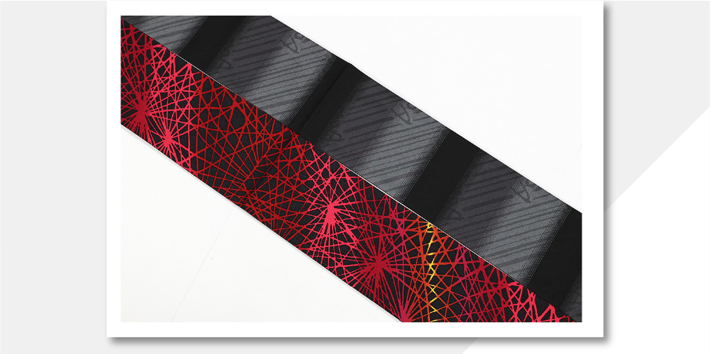 京都 青野工房 半幅帯 正絹 ハイブリッド染め 放射赤 モノトーン 1195