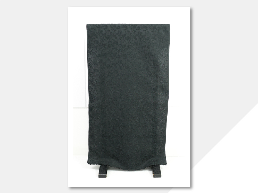 ワタマサ 洗える正絹 【お召し】 千八三重織 広幅 ハチス入洋花 黒