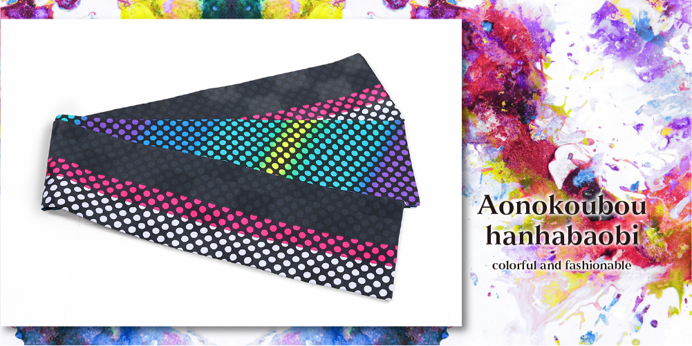 カラフルで力強い半幅帯で、自由にコーディネートを楽しんでください。