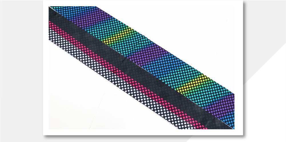 京都 青野工房 半幅帯 正絹 ハイブリッド染め ピンクドット 紫緑ドット 1102