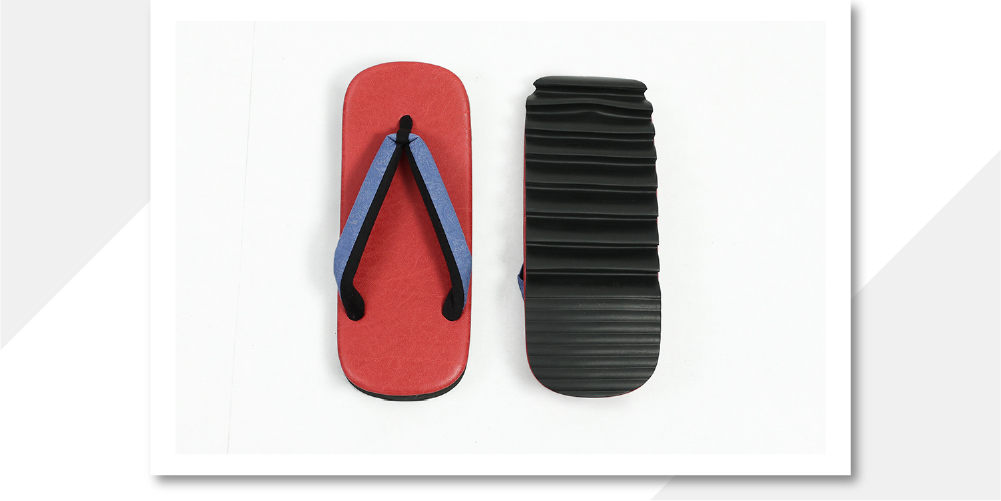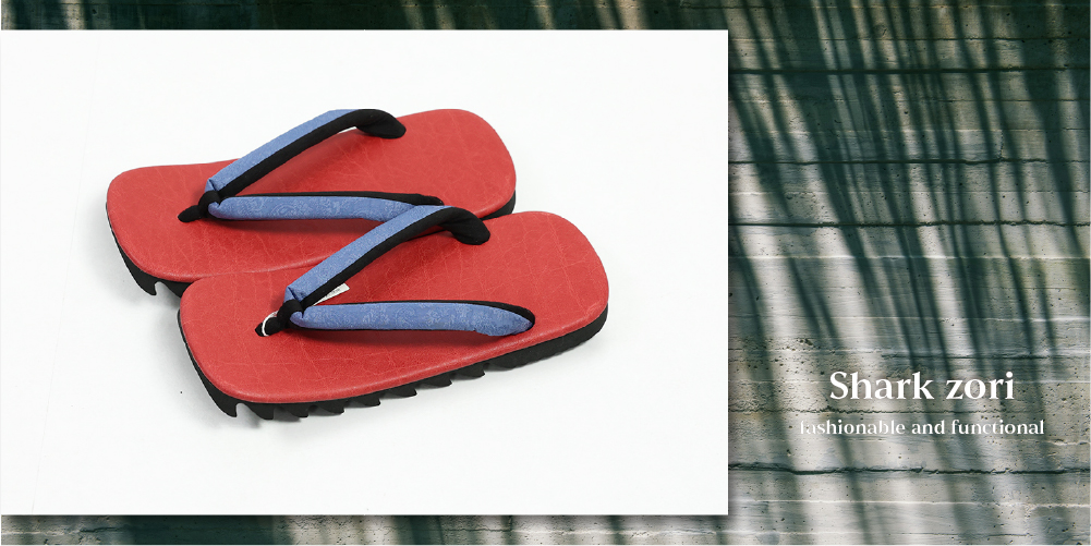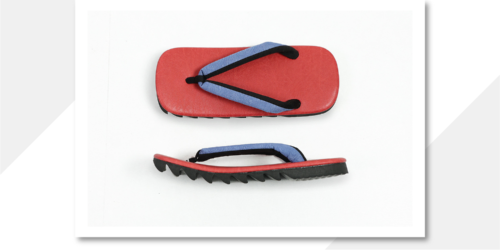 シャーク草履 男性用 赤合皮×青ペイズリー LLサイズ