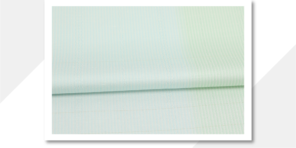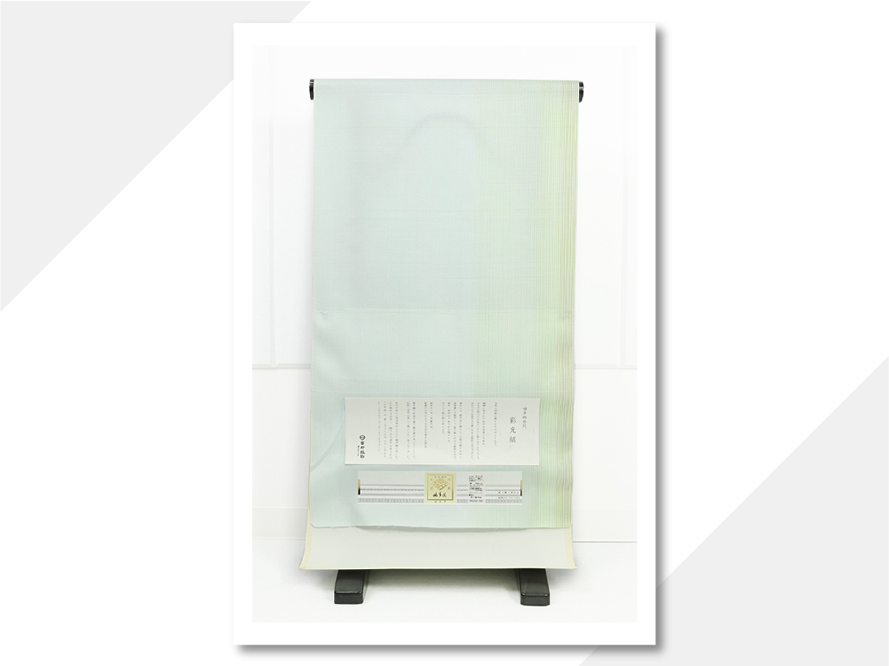 西村織物 正絹 お召し 広幅 献上柄 採光縞 薄緑×水色
