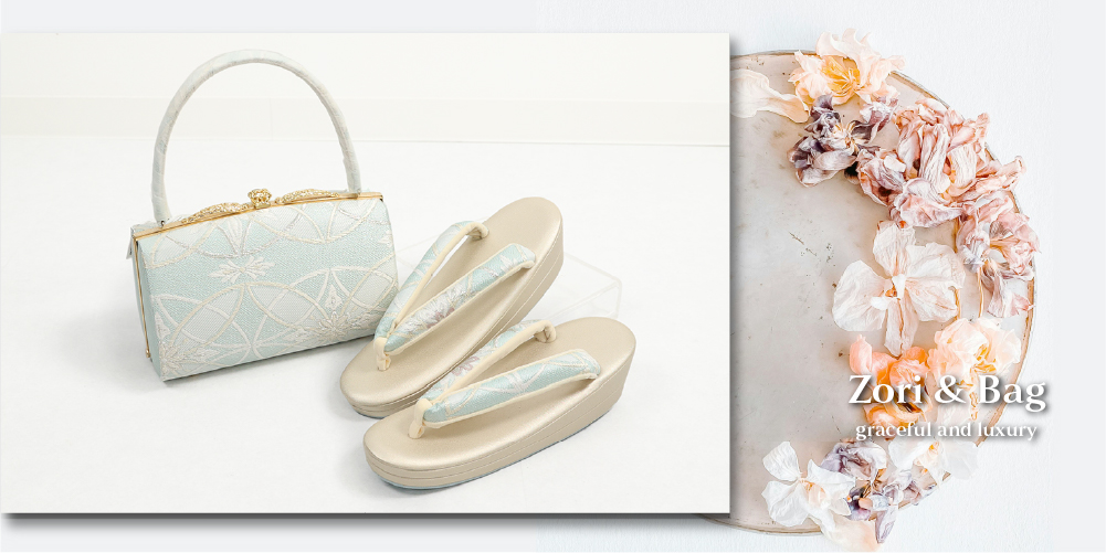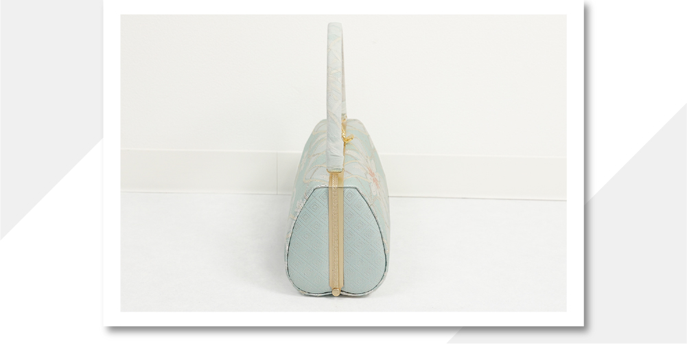 帯地は草履の鼻緒とバッグ本体部分に使用されています。