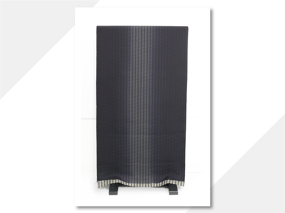 正絹着物 お召し 縞 ぼかし染め 濃灰色