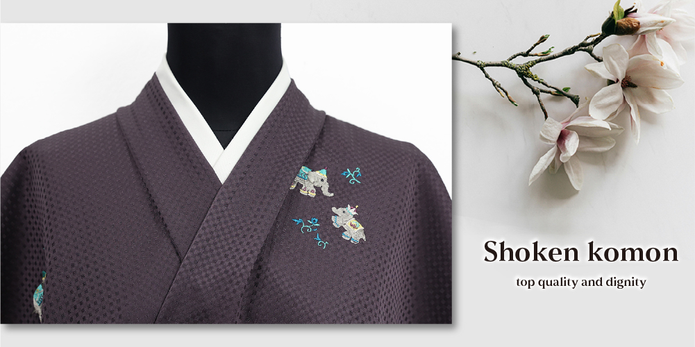 正絹 着物 小紋 丹後ちりめん 刺繍 ゾウ