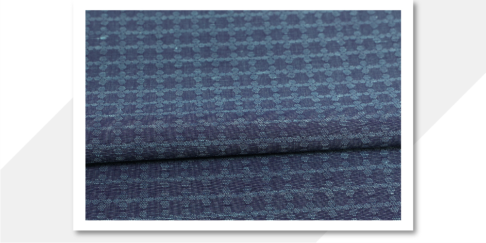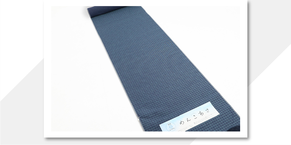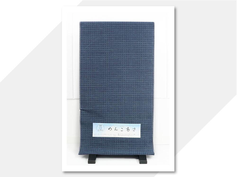米沢木綿 綿麻着物 紋KIPPE(きっぺ) めんこあさ 広幅タイル 紺x青