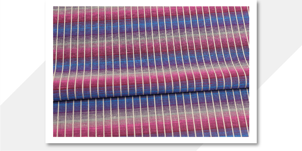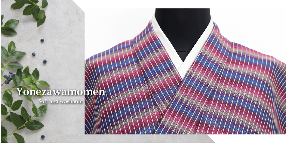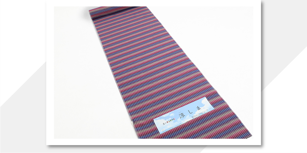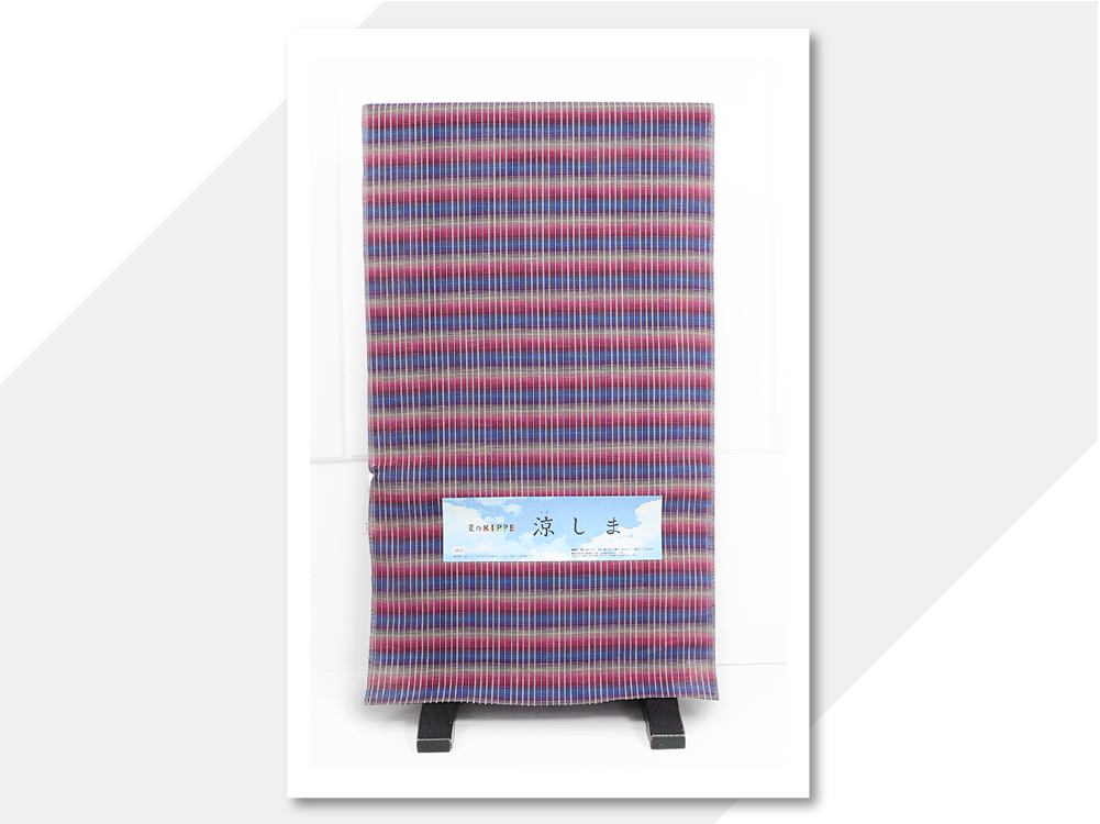 米沢織 綿麻着物 夏KIPPE(きっぺ) 涼しま 広幅 縞 多色ボーダー ピンク×青 ◆男女兼用◆