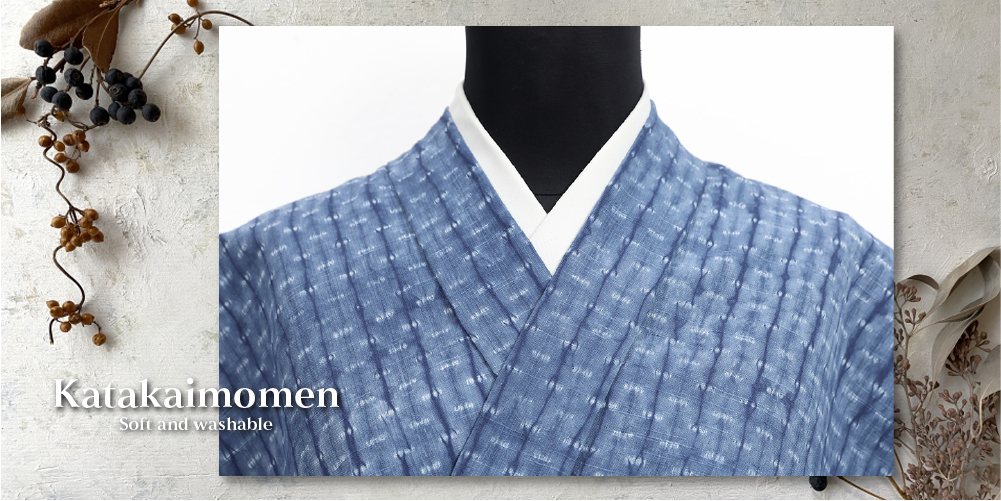 デニムのような風合い、やわらかい木綿着物でオススメです。