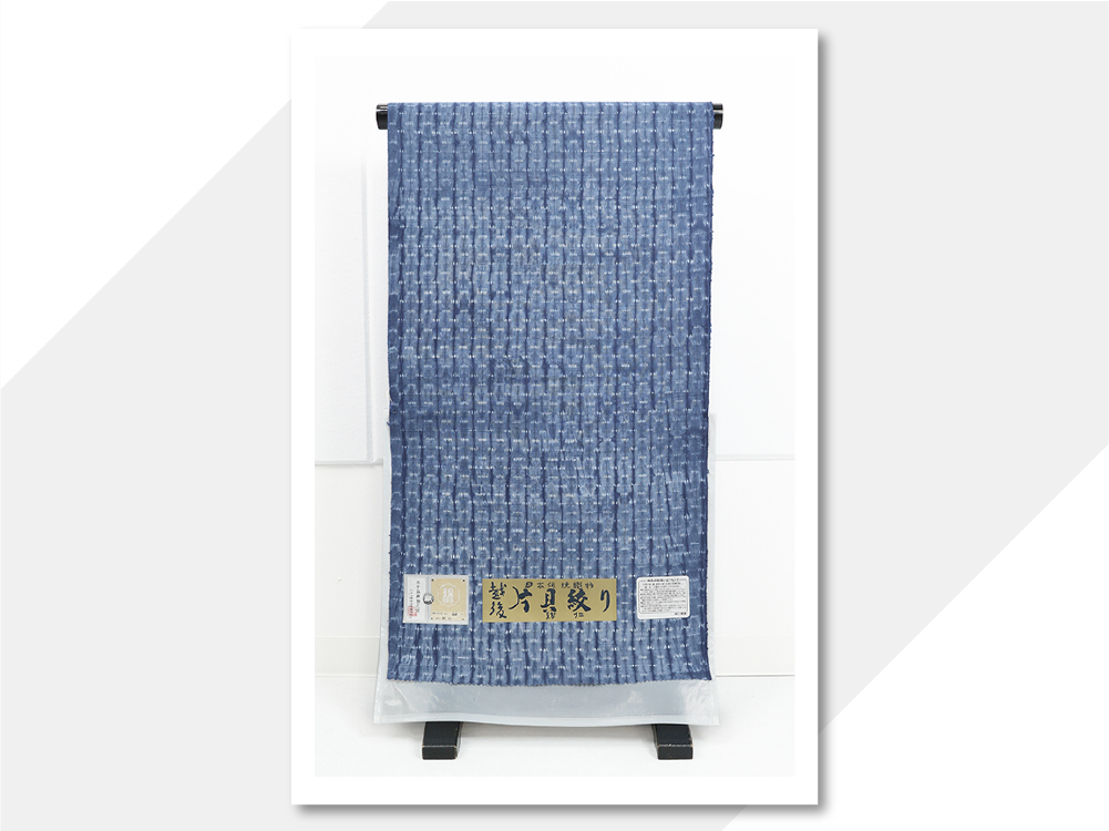 片貝木綿 木綿着物 紺仁工房 普段着きもの 縫締め絞り 縞 青