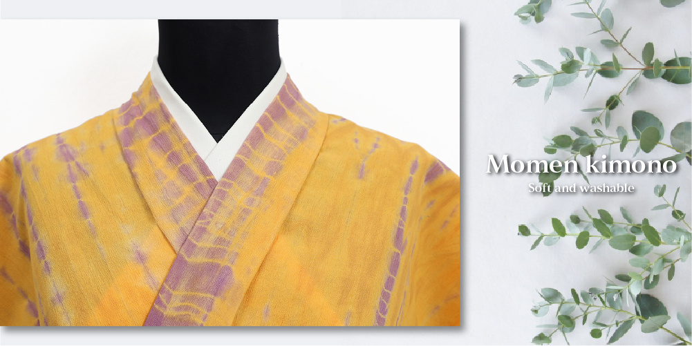 ひでや工房 木綿着物 綿ちりめん 絞り染め 黄色×紫