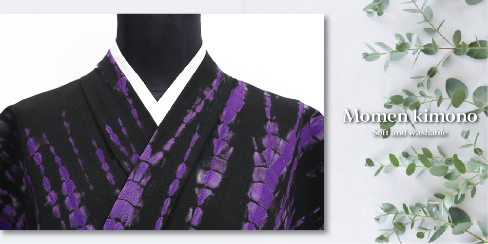 ひでや工房 木綿着物 綿ちりめん 絞り染め 黒×紫