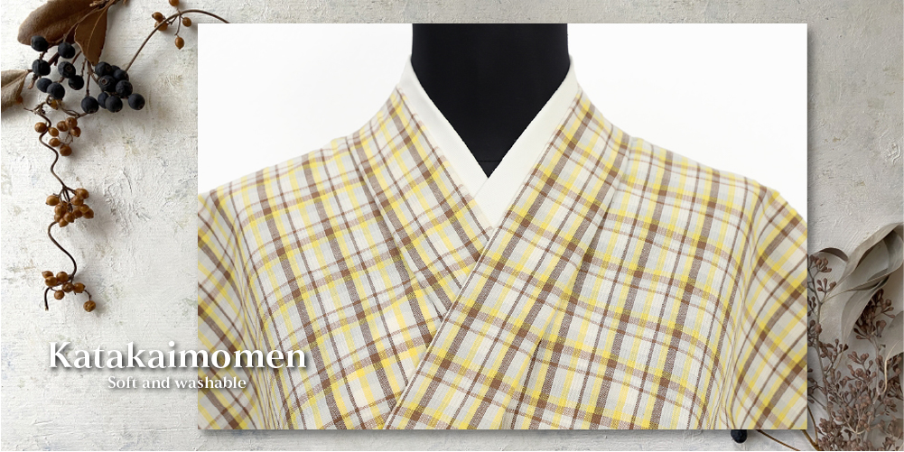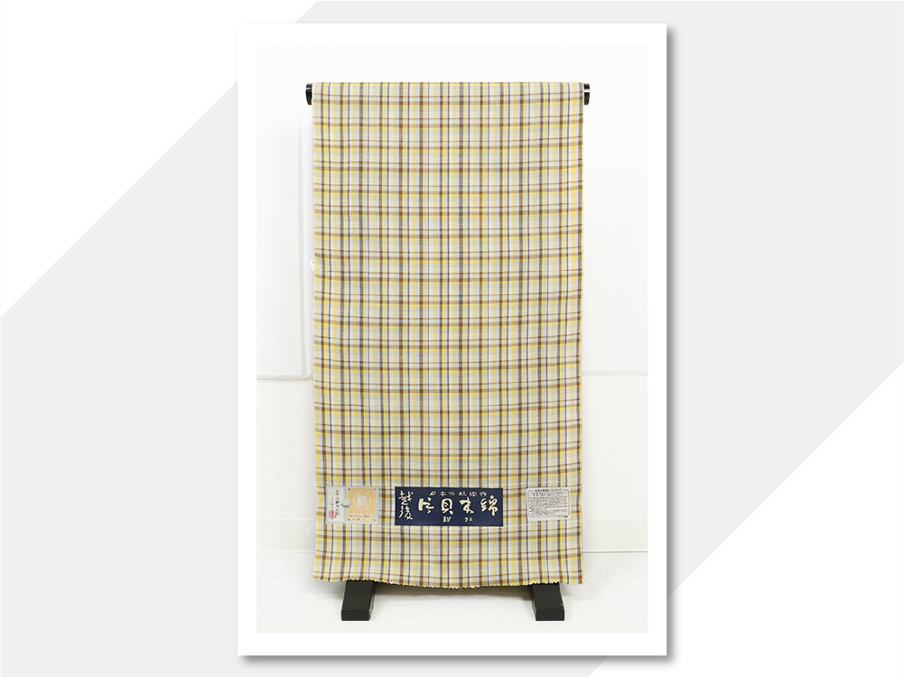 片貝木綿 木綿着物 紺仁工房 チェック 黄色×焦茶