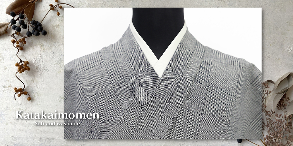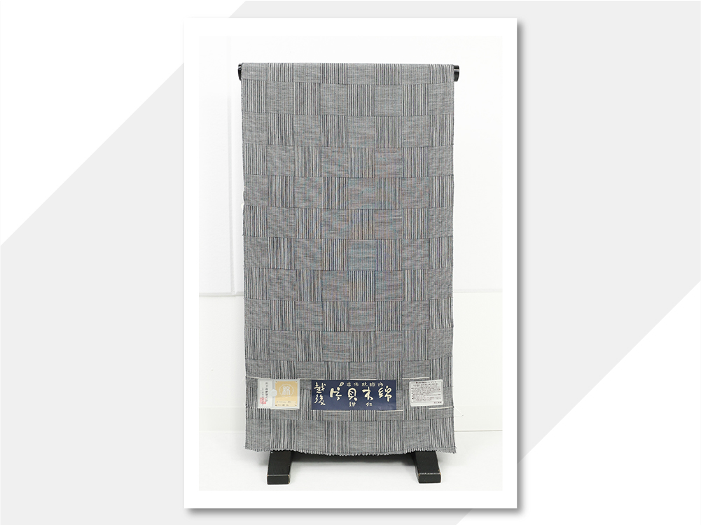 片貝木綿 木綿着物 紺仁工房 網代格子 灰色