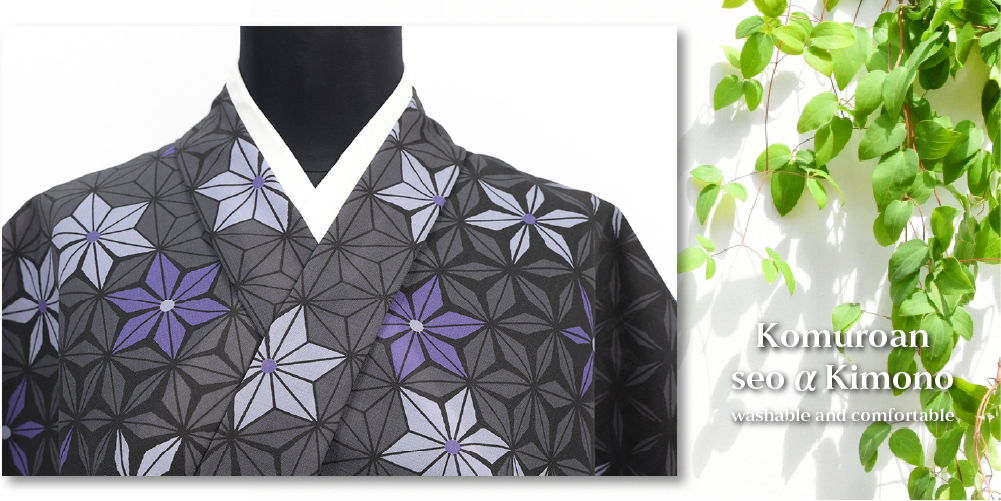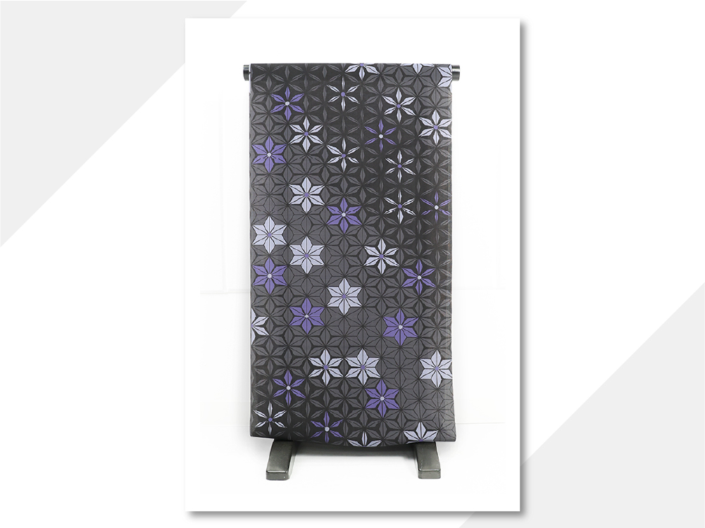 【受注商品】小室庵 セオα ポリエステル 着物 麻の葉 黒紫