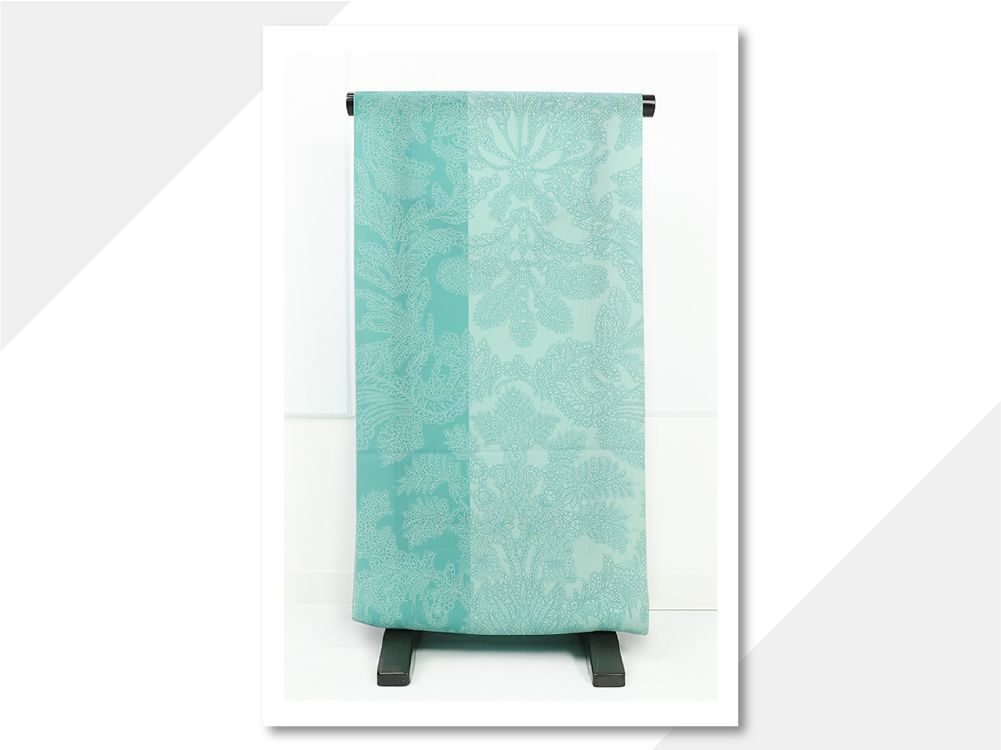 【受注商品】小室庵 セオα ポリエステル 着物 更紗 ミントグリーン