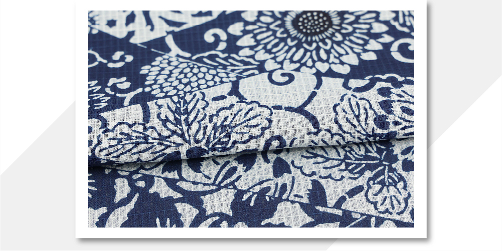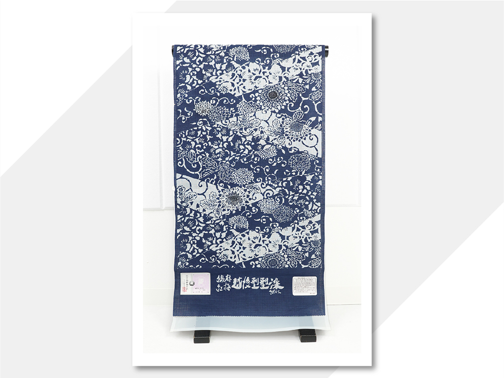 紺仁工房 綿麻紅梅 夏着物 越後型染 裂取更紗 菊 紺
