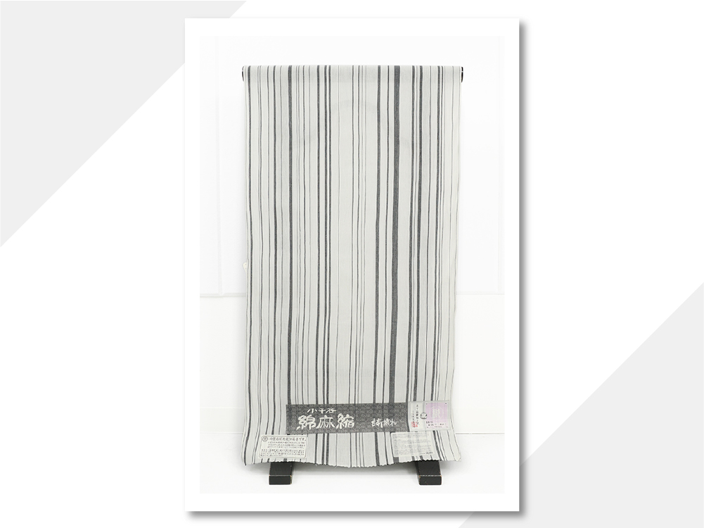 小千谷 綿麻縮 夏着物 楊柳 広幅 やたら縞 白