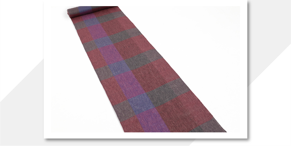 本麻 夏着物 近江 ルポワン染め チェック 赤紫×濃灰×青