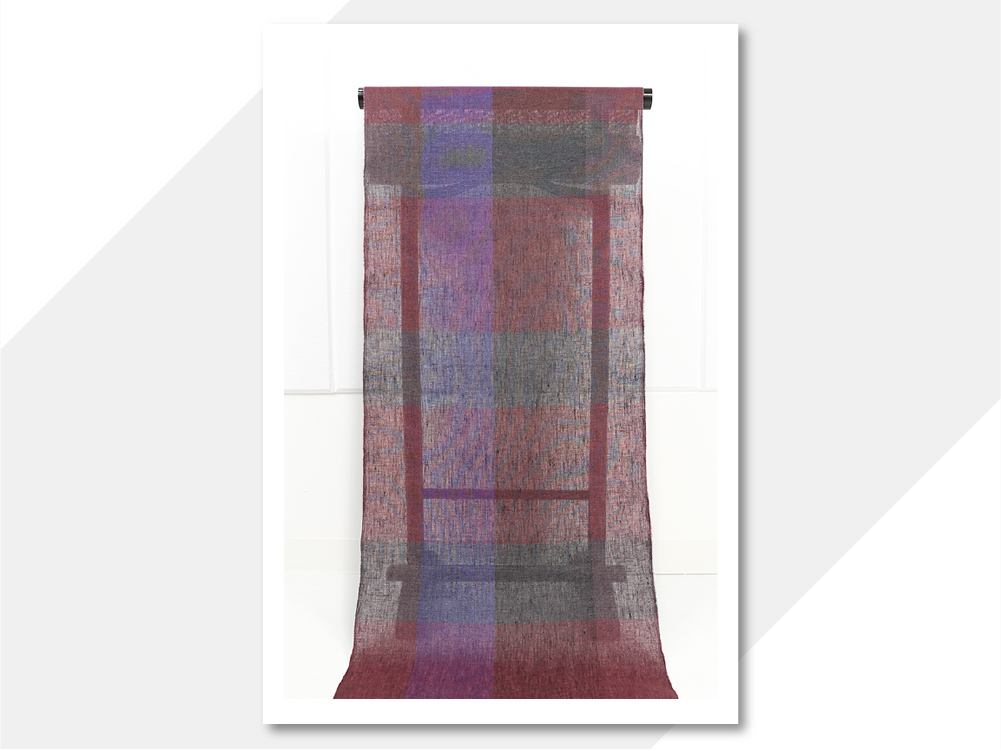 糸の表面を染めて中を白で残す、ルポワン染めの糸を使い織り上げました。